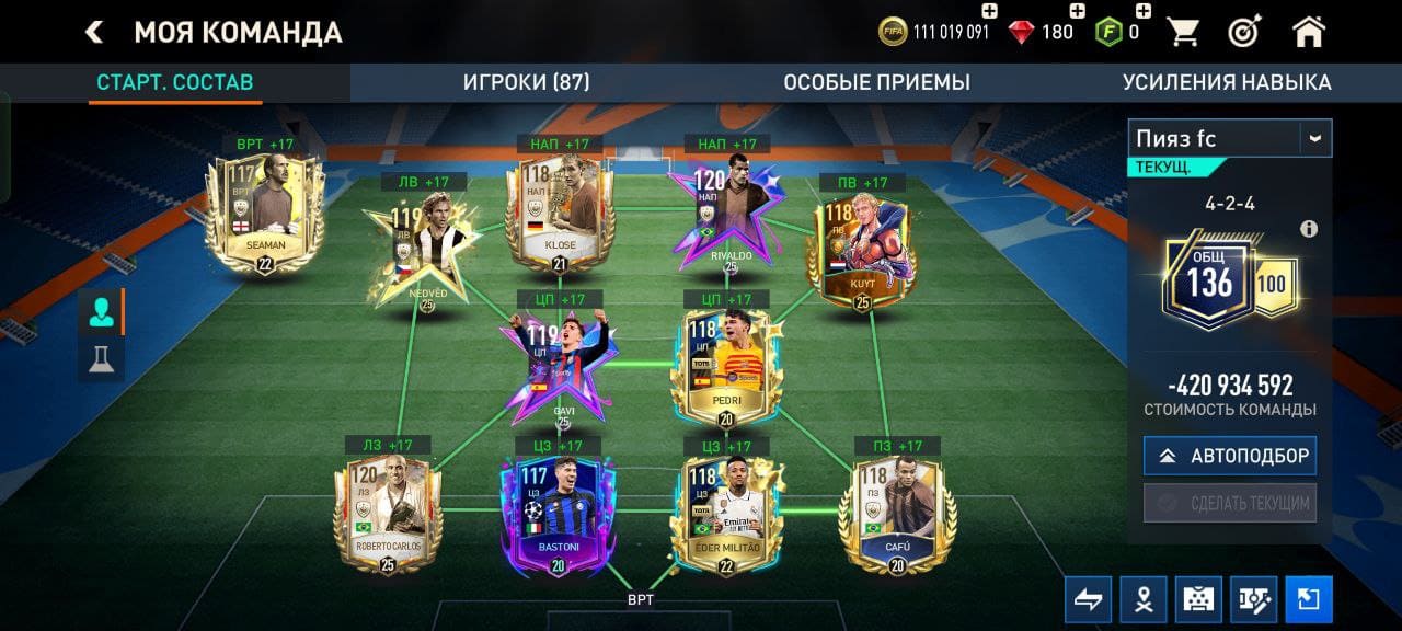 💰Золото: 17 772 260📗Fifa-point: 0🛑795💪 Игроки : 35