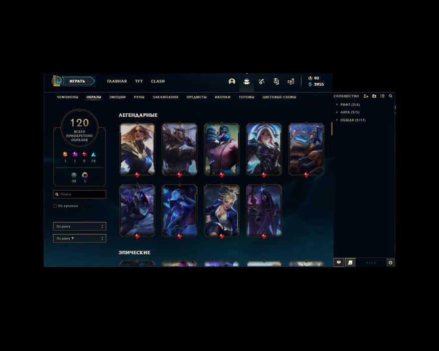 ✨Кол-во скинов: 120 (1 абсолютный скин мисс фортуна , мифический энни , 9 легендарных , 28 эпических,