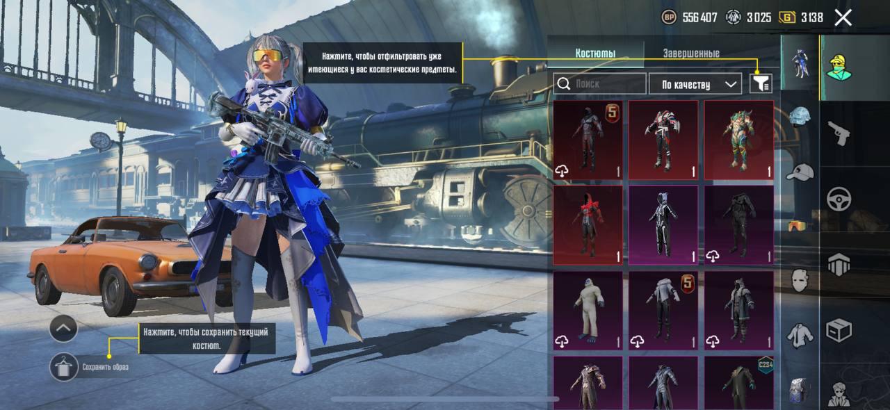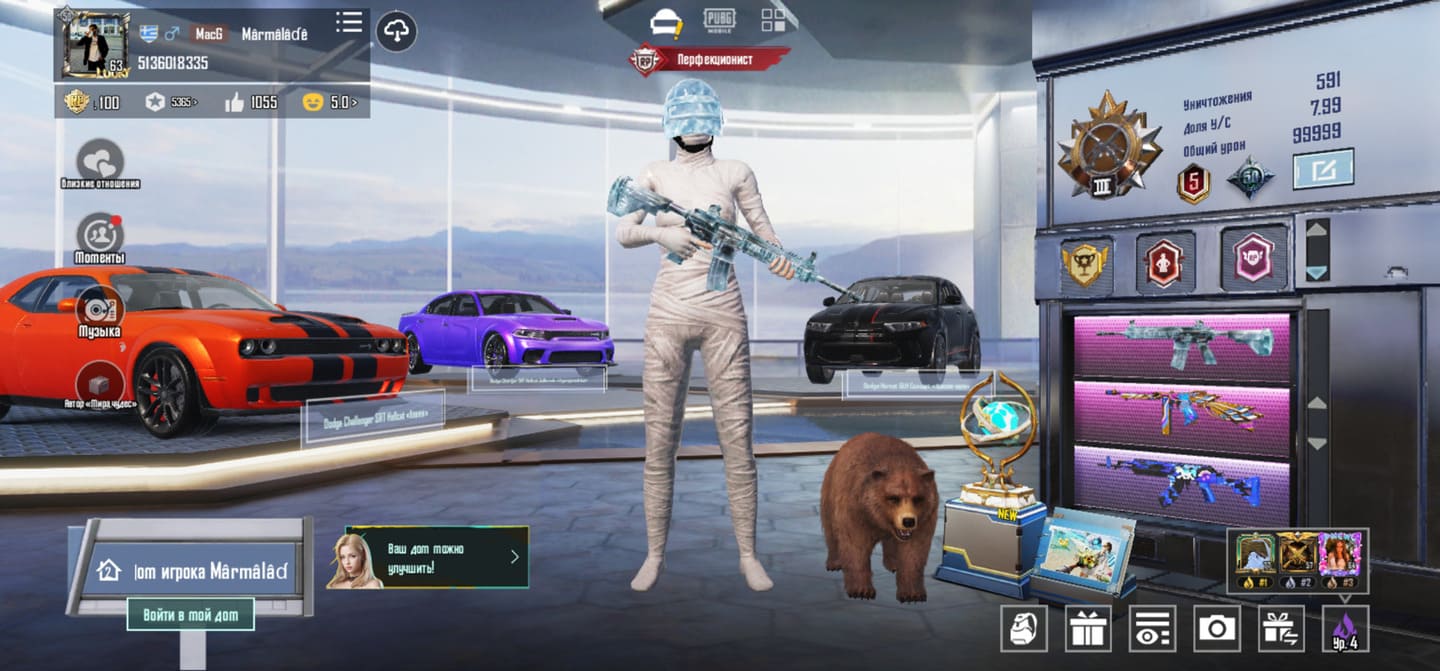 👚Топ костюмы: 65; ⭐️Royale Pass: с 5 сезонна; 🌈Скины на оружие: 36;