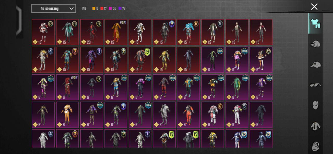 👚Топ костюмы: 51; ⭐️Royale Pass: с 4 сезонна; 🌈Скины на оружие: 25;