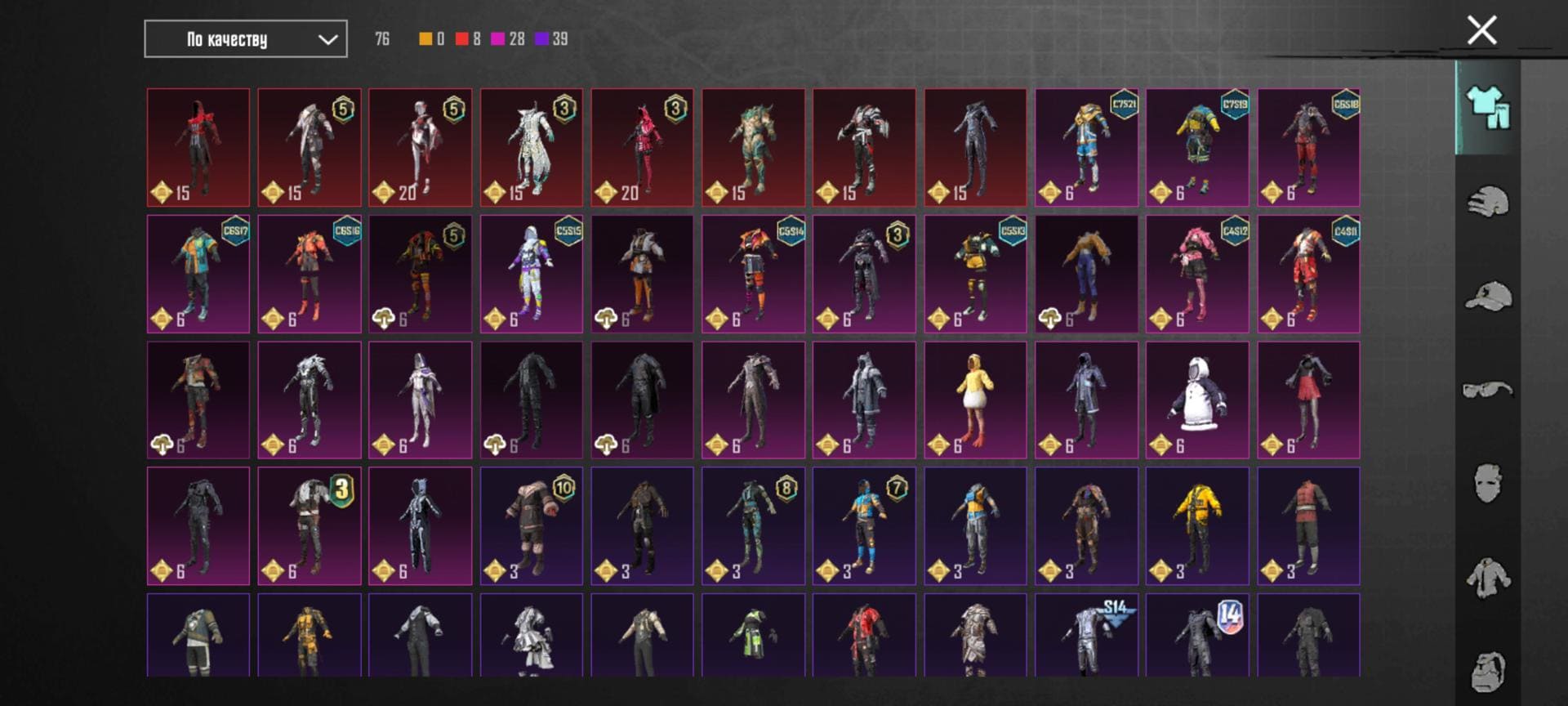 👚Топ костюмы: 97;⭐️Royale Pass: с 10 сезонна;🌈Скины на оружие: 47;