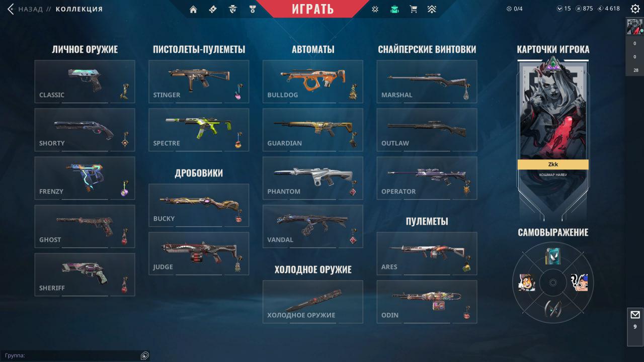 🥈Battle Pass: 3-8 Акт;✨Агенты: 23;🔫Скины на оружие: 90+;